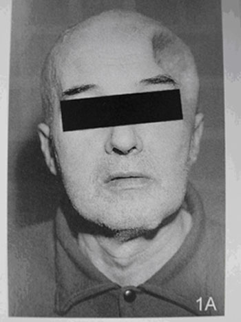 眶颧部的骨质缺损会使得上面部明显凹陷,严重影响外观。以下就是一幅额颞部缺损的正面照片。