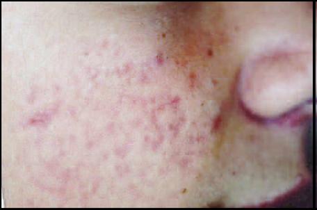 痤疮后瘢痕有多种,如皮肤表面出现多处小坑样凹陷瘢痕,俗称痘坑,少数人出现增生瘢痕,有的出现皮肤发红,色素沉着。由于疾病的多样性及复杂性,应针对性的选择治疗方法,传统的治疗方法包括磨削、化学剥脱、局部切除,真皮内组织充填剂及剥脱性激光换肤。剥脱性激光由于亚洲人的皮肤特点,术后色素沉着的机率很高而不为患者接受。