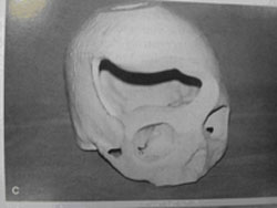 眶颧部的骨质缺损会使得上面部明显凹陷,严重影响外观。以下就是一幅额颞部缺损的正面照片。