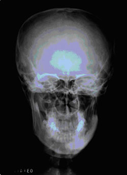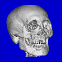头颅3维CT扫描 可以了解复杂的解剖关系,而且可以用所得到的数据进行个性化修复体的制作。
